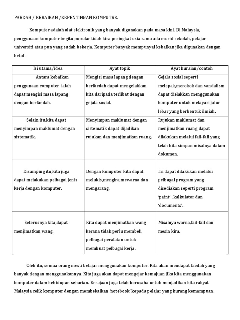 Faedah Penggunaan Komputer Pdf